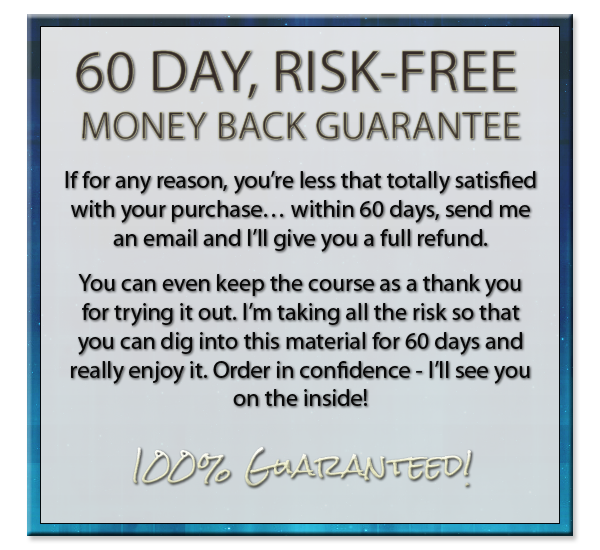 P.P.S. Don't forget I'm backing with this with a full 60 day money-back guarantee! If you're not happy with the training, simply send a message at getyoursupport.com and I'll refund you without hassle!
